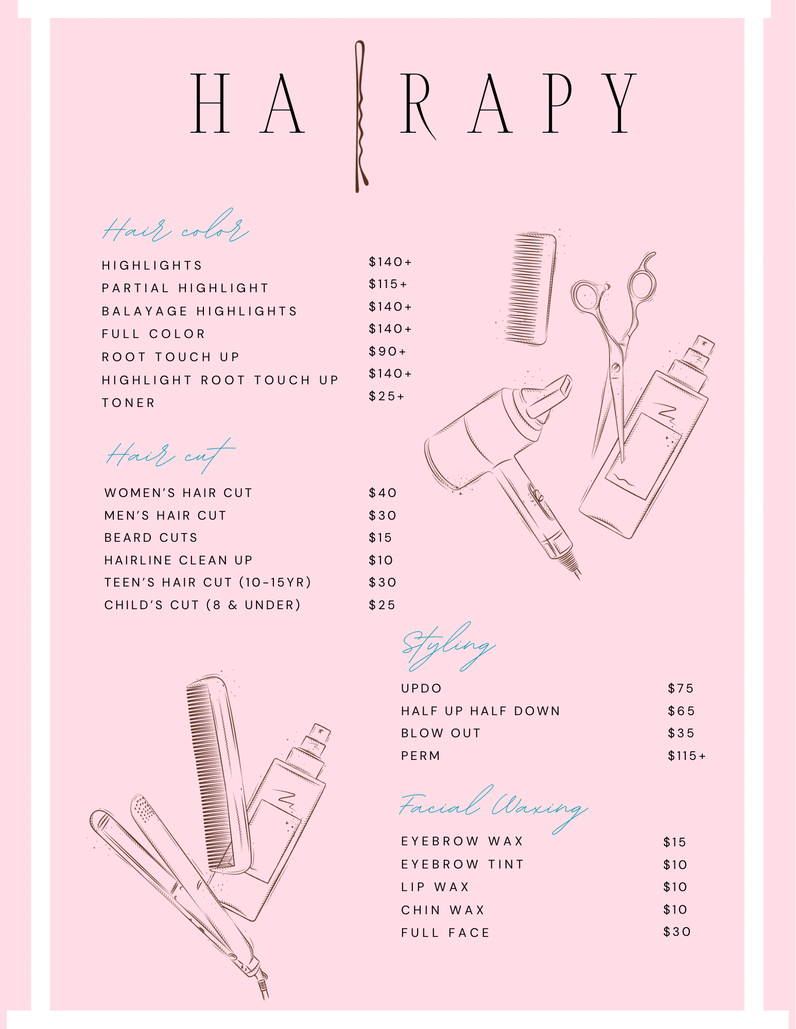 Hairapy Studios has been operating since 2010. We strive to master techniques to accomplish your hair wants and needs.